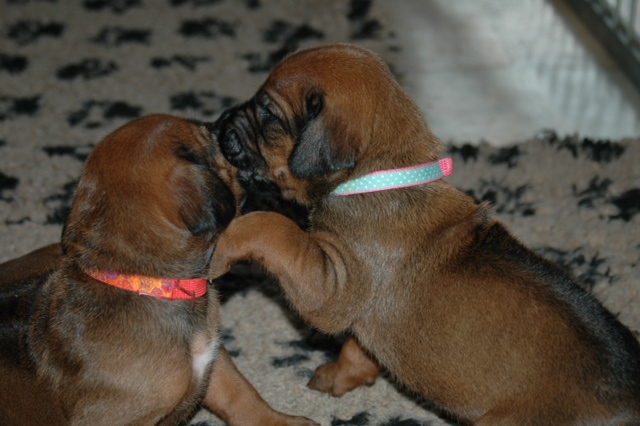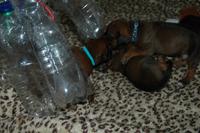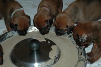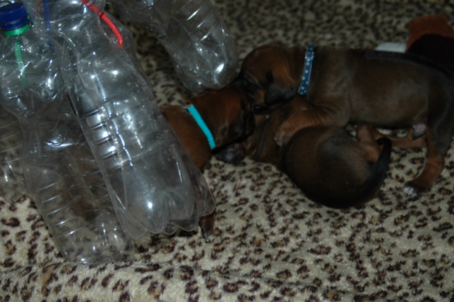 Unsere kleinen G´s sind jetzt 2 Wochen alt. Die Kleinen nehmen gut zu. Langsam lernen Sie auch am Futternapf zu fressen und nicht darin rumzulaufen. Nach wie vor ist aber Mama`s Milchbar immer noch sehr begehrt. Ihre erste Wurmkur haben sie gut überstanden. Mittlerweile sind Sie auch schon ziemlich schnell unterwegs und untersuchen jede Ecke ihres Welpenzimmers. Viel Spaß haben Sie mit dem Flaschenmobile.